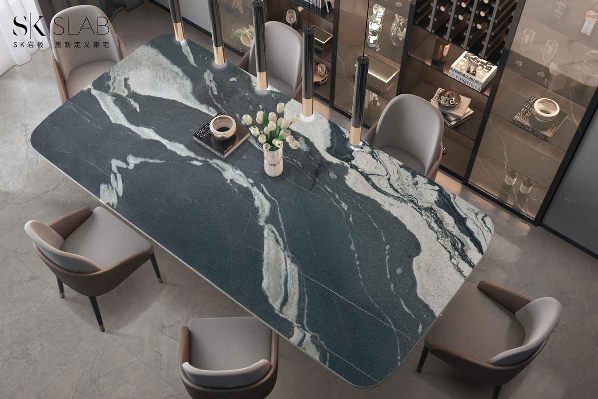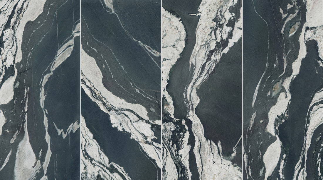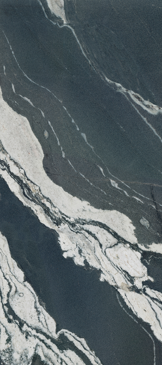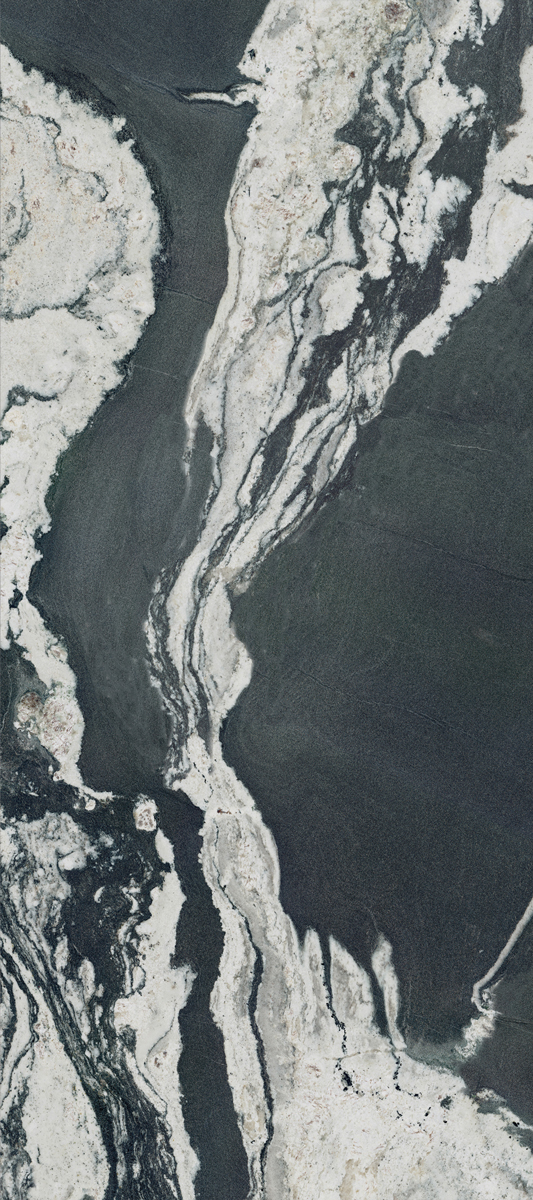 黑白藝術(shù)的融合,大氣奔放的流紋像天然山脈的肌理,極強的視覺沖擊力,讓空間無限延伸,神秘而有富生命力與藝術(shù)美感。