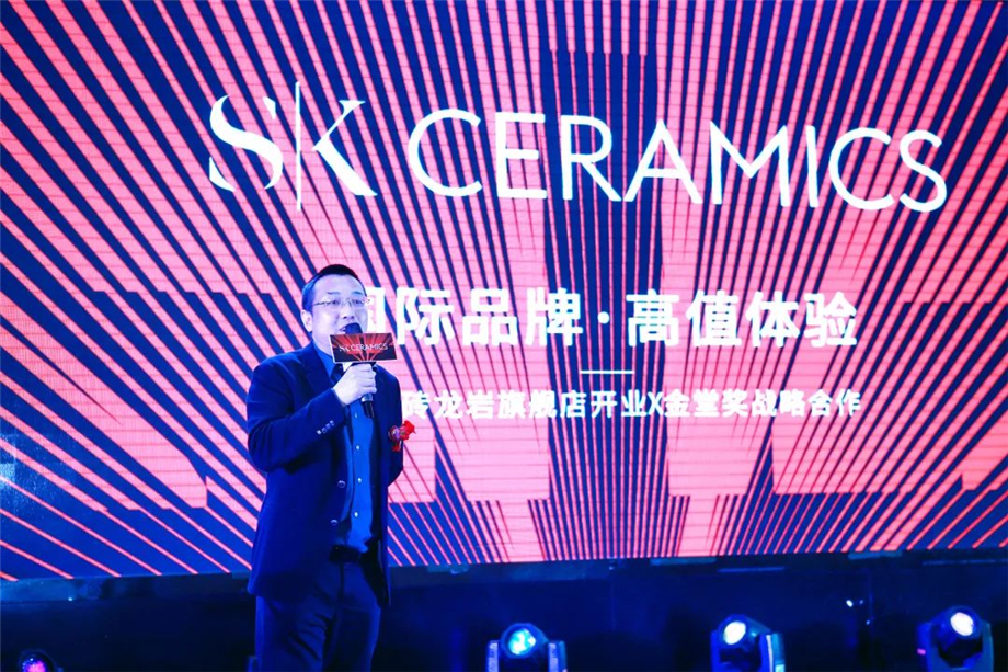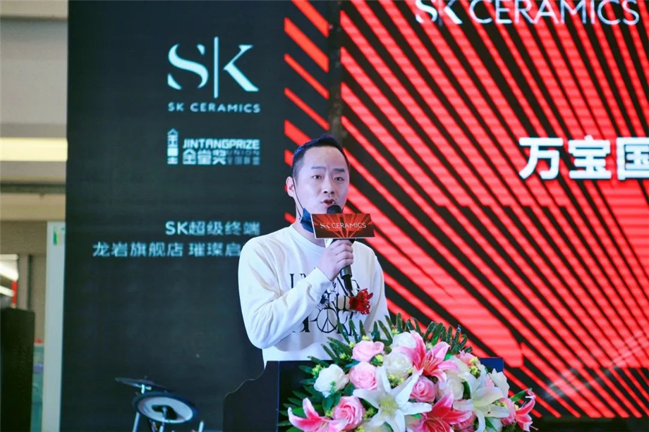 龍巖SK瓷磚董事長楊天堯先生向參加開業慶典的貴賓表達了誠摯的謝意和歡迎。同時楊董表示:SK瓷磚,國際品牌,高值定位,強大的品牌實力與金堂獎攜手合作,定能更好賦能終端,迎合市場新的消費升級。楊董相信憑借自身團隊的務實精進、強大的總部實力、高顏值、高品質的高端產品以及極致的服務,定能更好地滿足龍巖高端消費群體的需求。