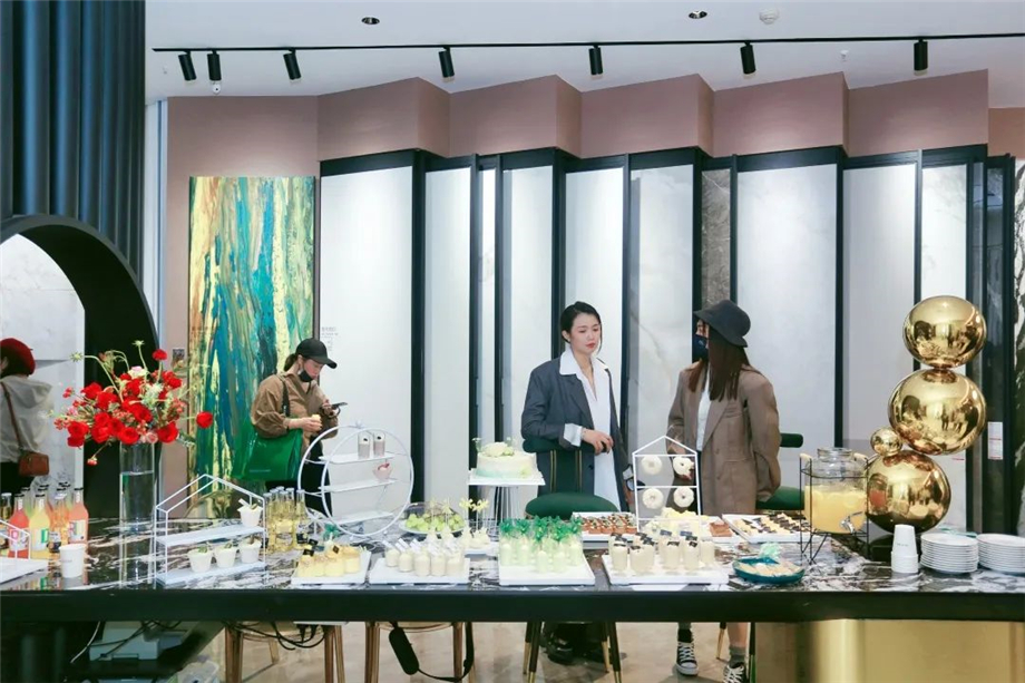 慶典活動過后,一眾領導、設計師精英們、媒體朋友們紛紛到超級終端——SK瓷磚龍巖旗艦店鑒賞、打卡,共話空間前沿設計,探討產品最新設計、工藝趨勢。